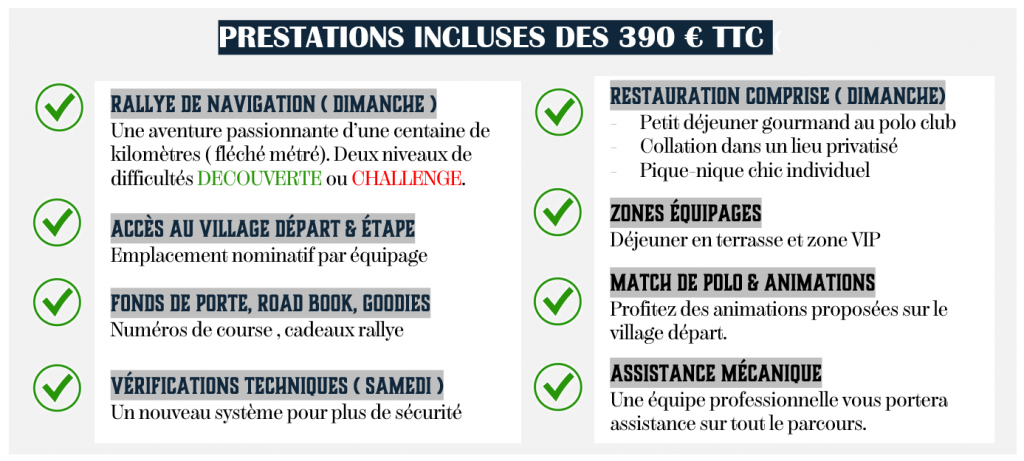 A votre retour du Rallye le dimanche midi au Polo Club d’Apremont, de nombreuses animations rythmeront cette fabuleuse après midi entre Match de Polo , Concours d’élégance , Vente aux enchères automobiles sans oublier plusieurs surprises que nous gardons pour l’instant secret.
