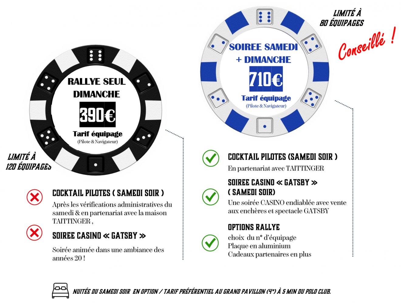 Rallye seul : 70 € / cocktail + Diner + Rallye : 220 €